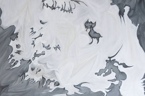 Proche des techniques des surréalistes de dessin automatique. Je ne pense pas être complètement dans une abstraction du réel. Des éléments extérieurs peuvent m’apporter un support créatif. Par exemple : la contrainte enrichissante du travail avec un modèle vivant.