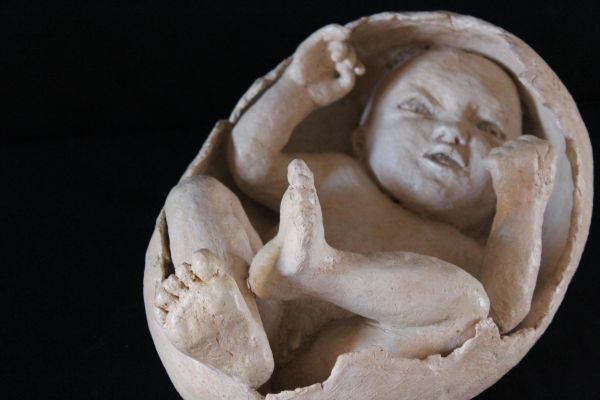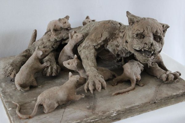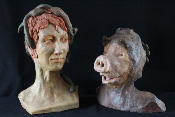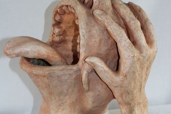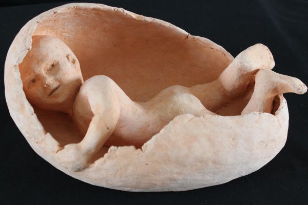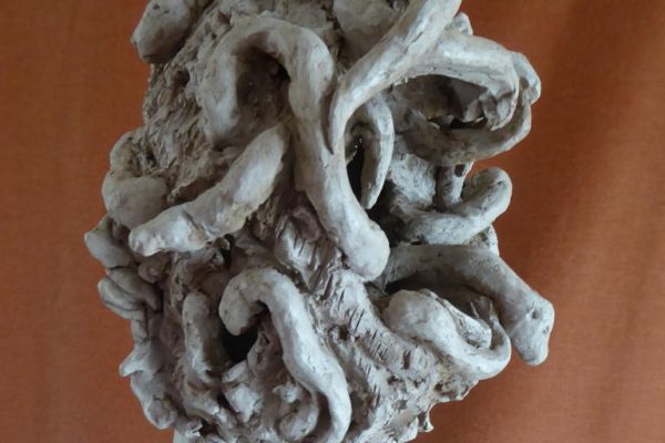 Pour ses travaux de modelage elle utilise la terre , qu'il faut dompter, apprivoiser, corriger En séchant, l'argile prend ses aises pour changer l'aspect et faire ressortir des défauts irréparables après cuisson à 950 degrés.